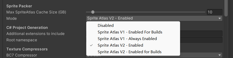 一个是打包和编辑模式都可以生成图集,另一个是只允许在打包时生成图集
